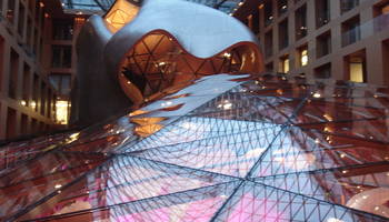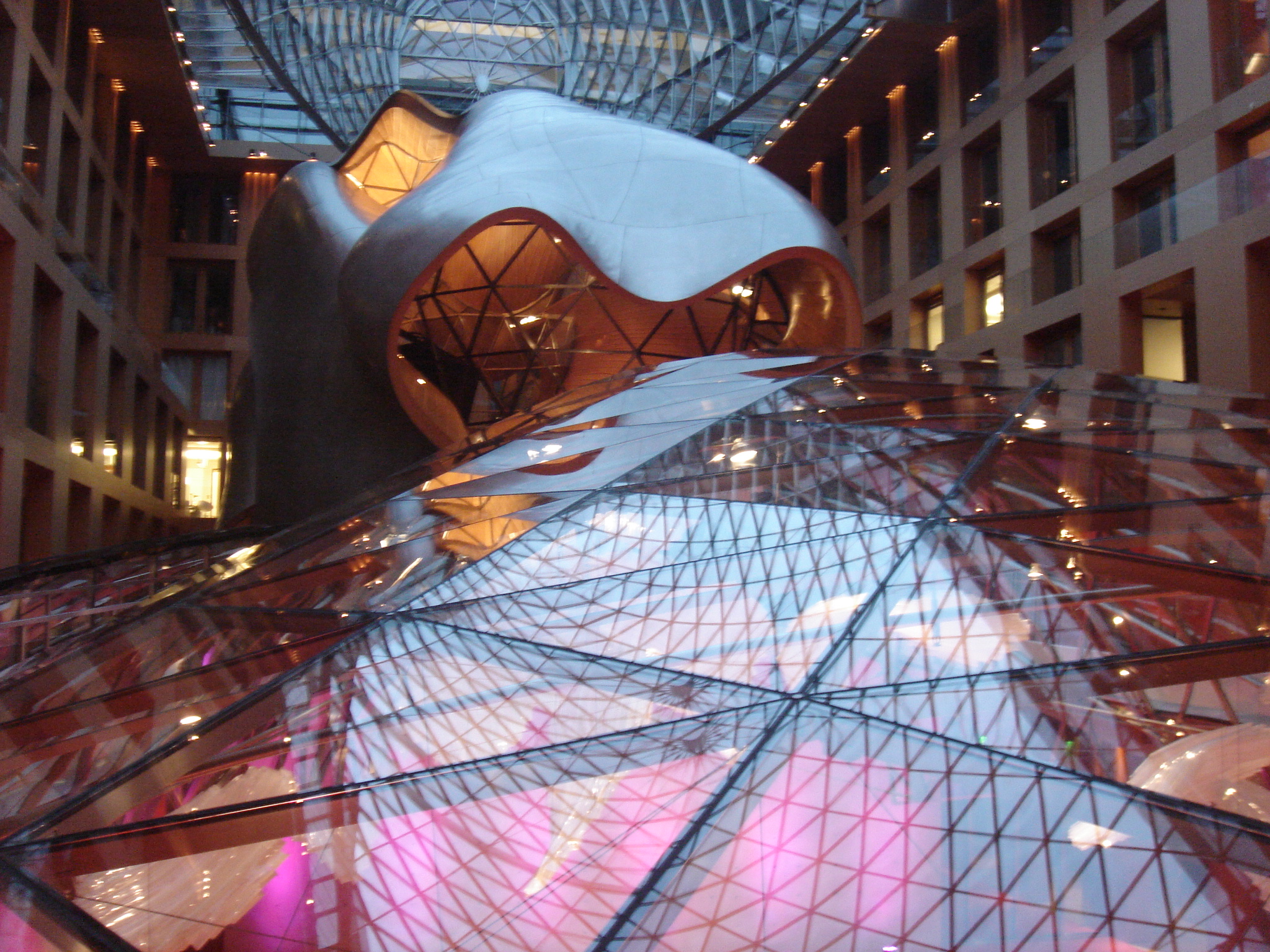 Erster Programmpunkt war die Besichtigung der DZ Bank. Dieses Haus am Berliner Platz 3 dient aber nicht etwa Bankgeschäften sondern stellt ein reines Repräsentationsgebäude für Veranstaltungen dar. Es entstand nach dem Entwurf des amerikanischen Stararchitekten Frank O. Gehry. Die Berliner nennen das Haus auch „Der Wal am Brandenburger Tor“.