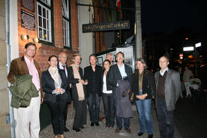 Abends traf man sich zur gemeinsame Vesper in der bekannten Schiffergesellschaft, wo in alten Vorzeiten die Kaufleute und Schiffseigner die Waren und deren Transport über Trave und Ostsee aushandelten nicht ohne einen guten Schluck dabei zu sich zu nehmen. In dieser sehr rustikal und maritim eingerichteten Herberge hatten unsere Rotarier zwar keine Geschäfte auszuhandeln, wirkten jedoch ebenfalls in lockerer Atmosphäre sehr geschäftig. Der Abend zog sich lange hin. Auf dem Heimweg wanderte dennoch manch einer wie von Geisterhand geführt in die bewusste Kneipe um sich noch einen Absacker zu genehmigen.
